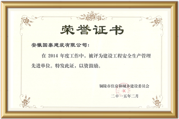 14年建設(shè)工程安全生產(chǎn)管理先進(jìn)單位