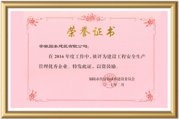 16年建設工程安全生產(chǎn)管理優(yōu)秀企業(yè)
