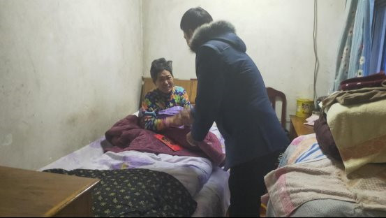 “謝謝...謝謝...,感謝你們愛心企業(yè)還能想到我...”困難群眾凌世桂含著眼淚說(shuō),凌世桂家住商北,丈夫2015年因骨癌去世,夫妻二人收入微薄,為治病更是負(fù)債累累。屋漏偏逢連夜雨,沒(méi)幾年,凌世桂本人又查出胃癌,2020年全胃切除,現(xiàn)長(zhǎng)期臥床需要護(hù)理,每月1000元的退休金遠(yuǎn)不夠藥費(fèi)。安徽國(guó)泰建筑集團(tuán)了解到他家情況后,董事長(zhǎng)張自州一行,帶著5000元慰問(wèn)金上門看望。