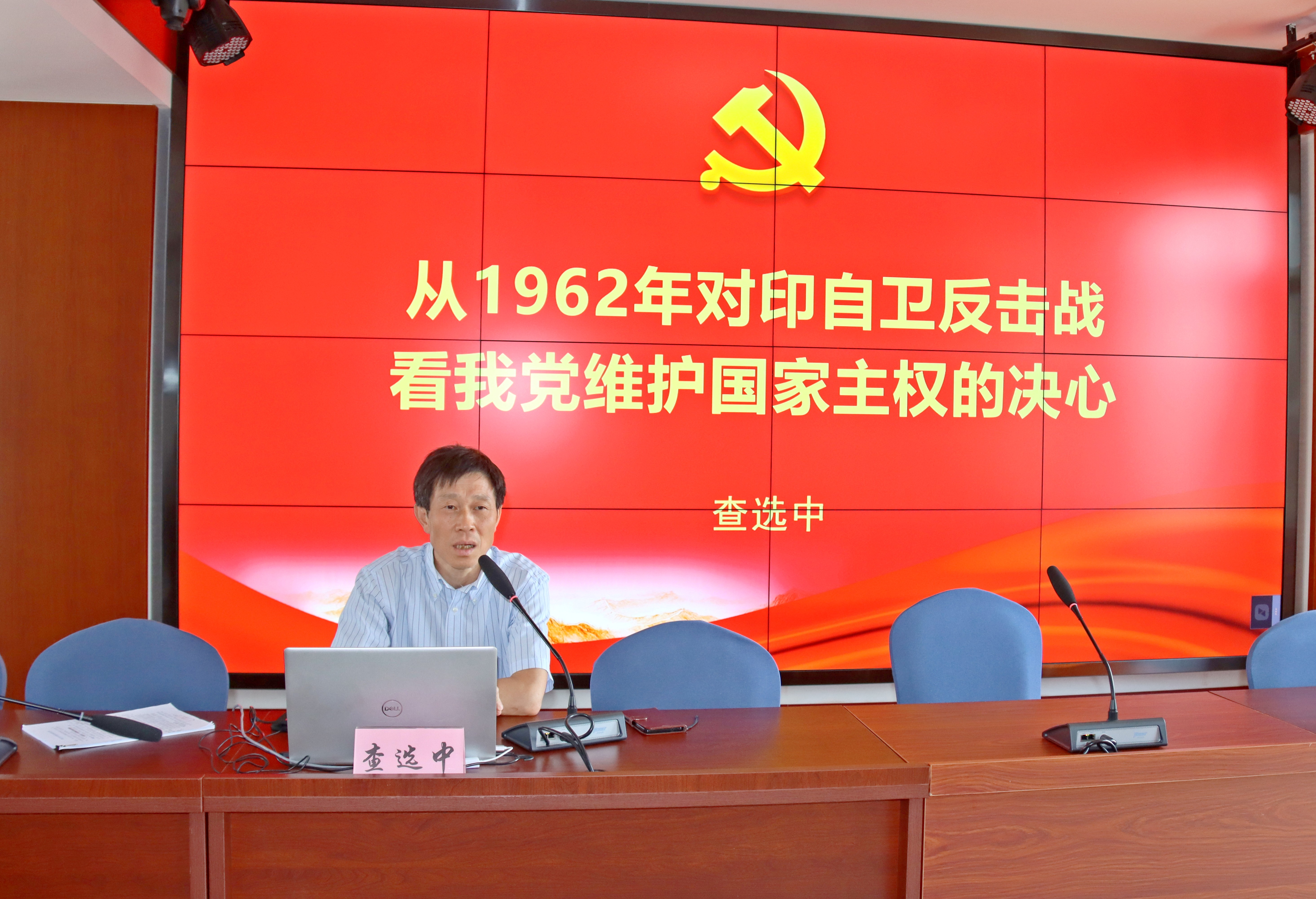 隨后,查選中以“從1962年對(duì)印自衛(wèi)反擊戰(zhàn)看我黨維護(hù)國家主權(quán)的決心”為題,圍繞中印兩國之間的歷史淵源、對(duì)印自衛(wèi)反擊戰(zhàn)演變過程、當(dāng)今中印兩國外交關(guān)系等篇章展開講解。他鼓勵(lì)大家勤學(xué)黨史、認(rèn)真體會(huì)我黨為維護(hù)領(lǐng)土主權(quán)所付諸的努力。他講完后,黨員們和職工群體深受觸動(dòng),紛紛表示受益匪淺。