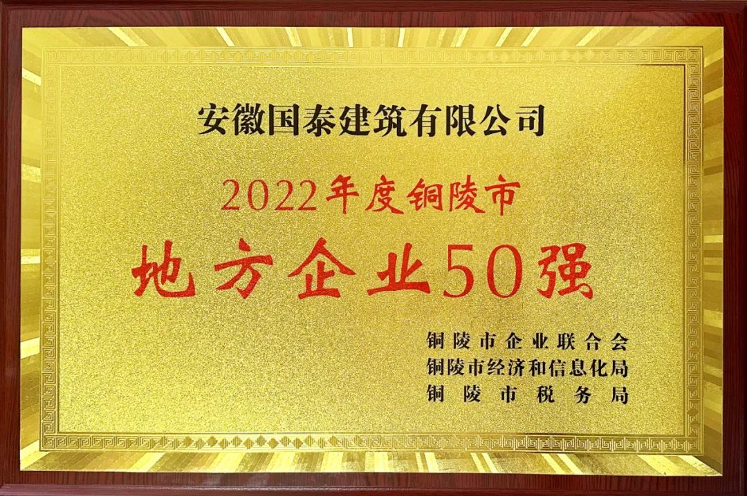 喜訊!國(guó)泰建筑榮獲2022年度銅陵市“地方企業(yè)50強(qiáng)”