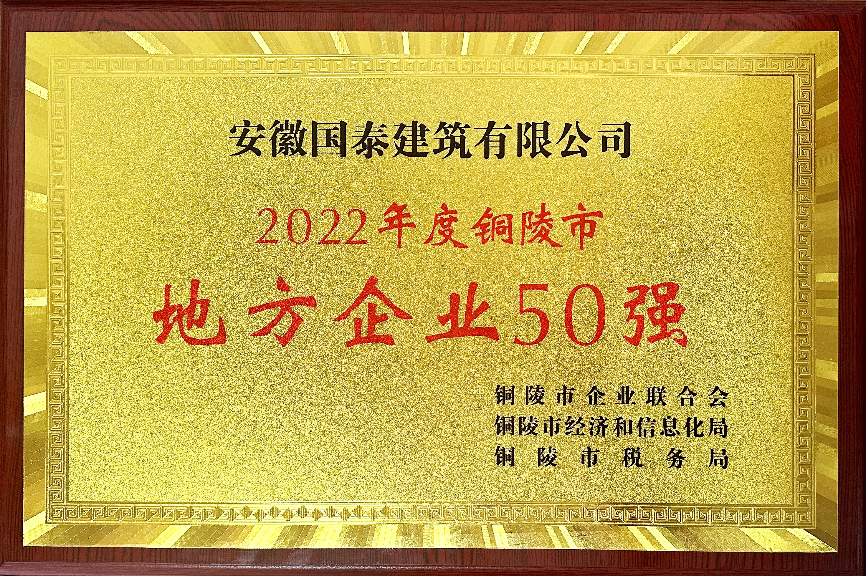 2022年度銅陵市“地方企業(yè)50強(qiáng)”、“納稅30強(qiáng)”